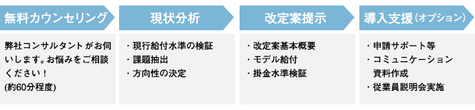 弊社では、従業員数300名未満(※)の企業様向けに、退職給付制度の設計・再構築コンサルティングをご提供しています。経験豊富な専門家が純粋にお客様の立場から最適な制度の設計・再構築のお手伝いをいたします。